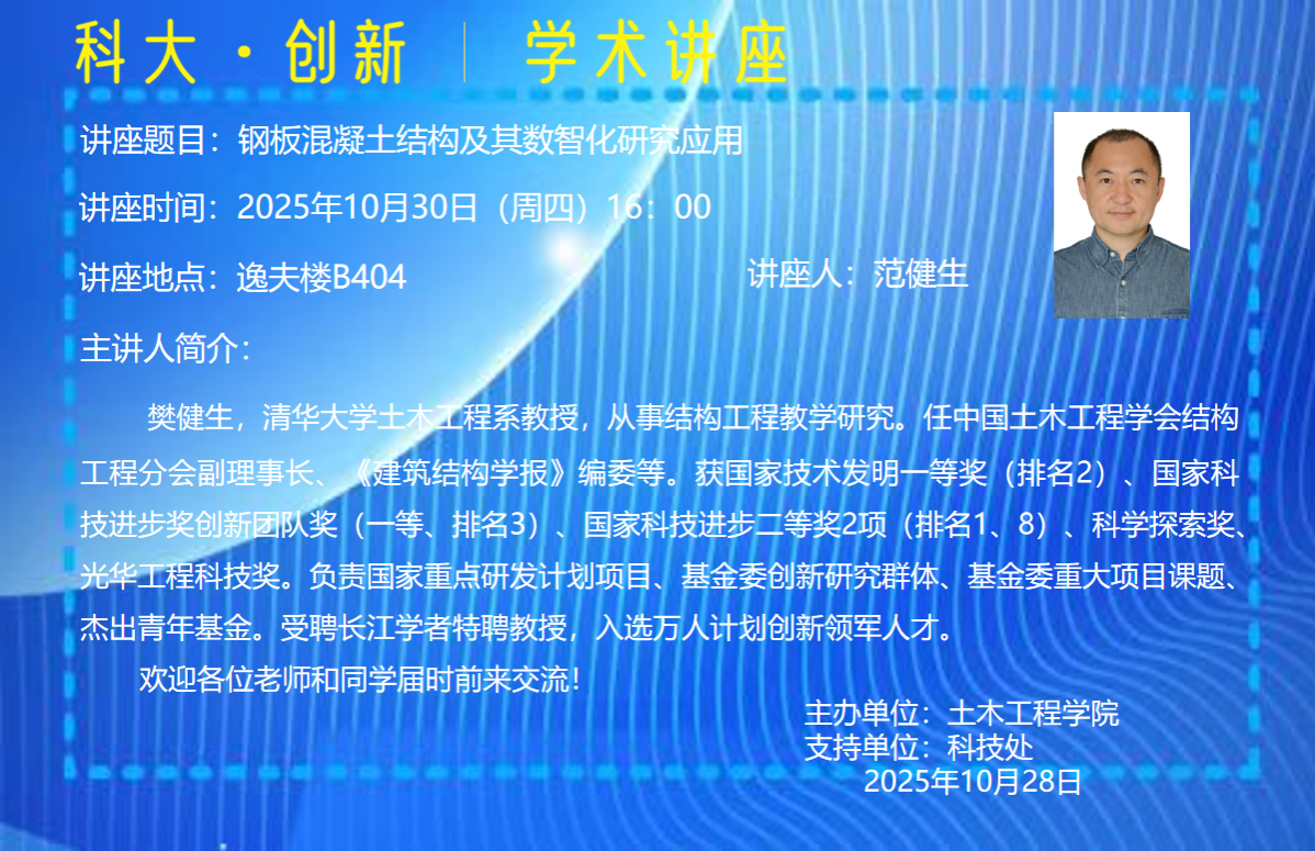讲座题目:钢板混凝土结构及其数智化研究应用